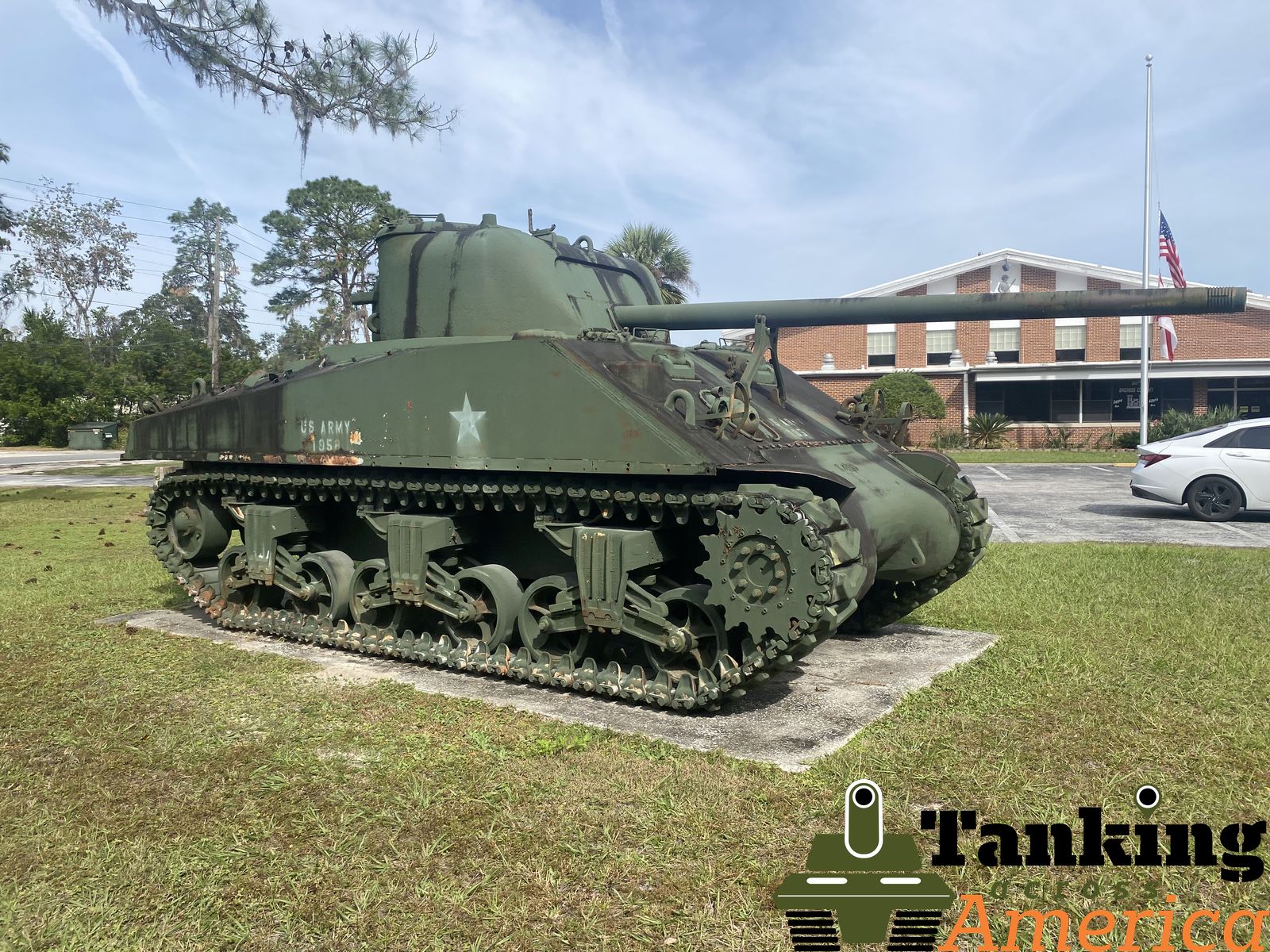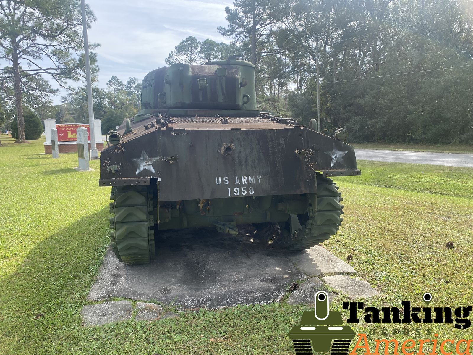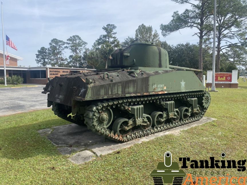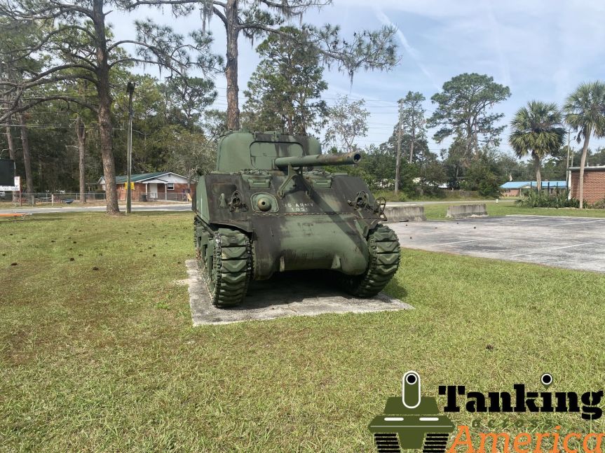 In Live Oak, Florida, this Sherman can be found at the local US Army National Guard Armory. This tank was built in October 1942 with this serial number 2823. The mantel and barrel are not original and are fake.