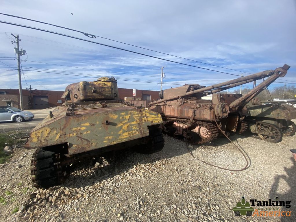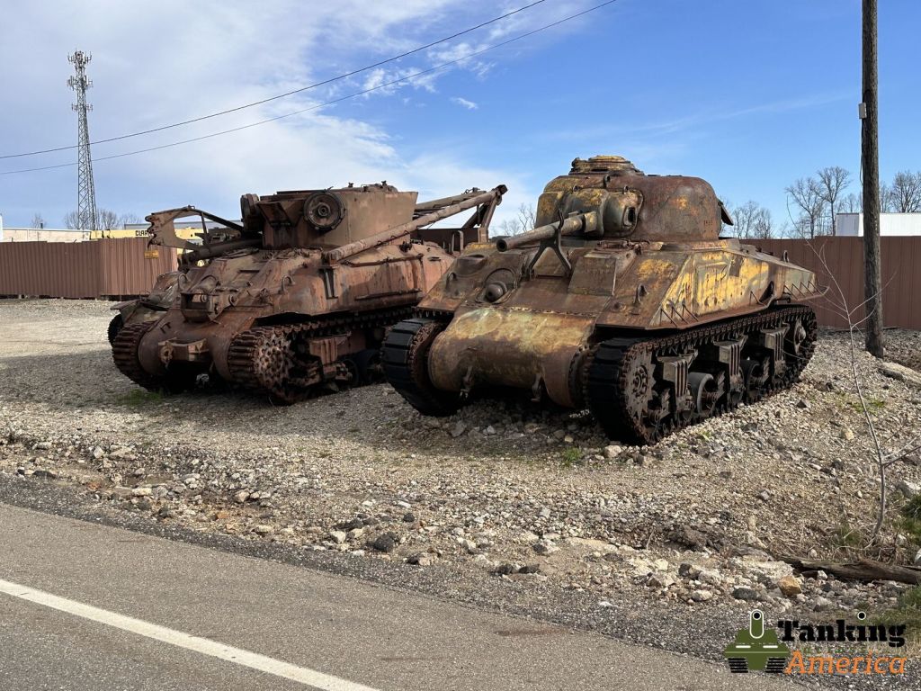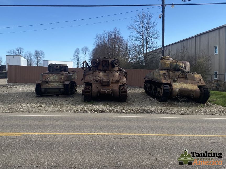 In Akron, Ohio, there is a company called Sam Winer Motors, that sells military vehicles and parts. In front of their yard, one can find a M4A3E9 Sherman, a M32 Tank Recovery Vehicle and a M5 Stuart.