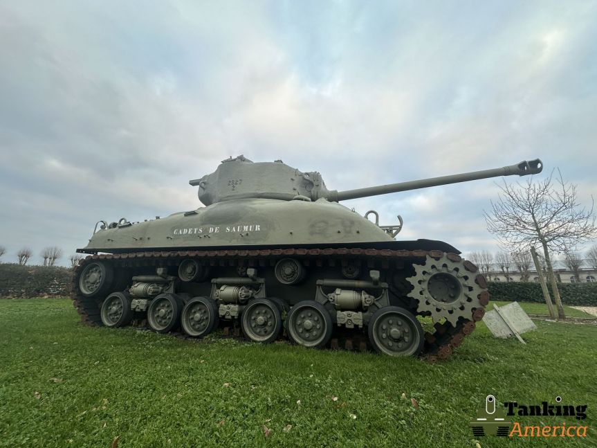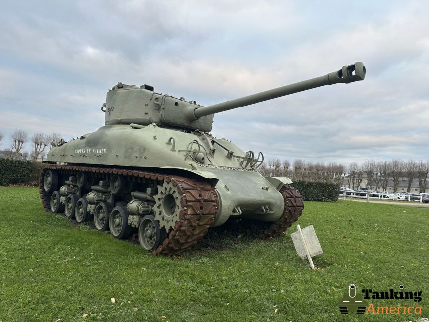 This Sherman can be found at the Saumur Cavalry School, in Saumur, France. Not much in known about this tank but there is a great write done here, “The Liberating Kind” site. This site was heavily used by me and my family when we visited Europe in December 2024, to find the various road side tracks that can be found.